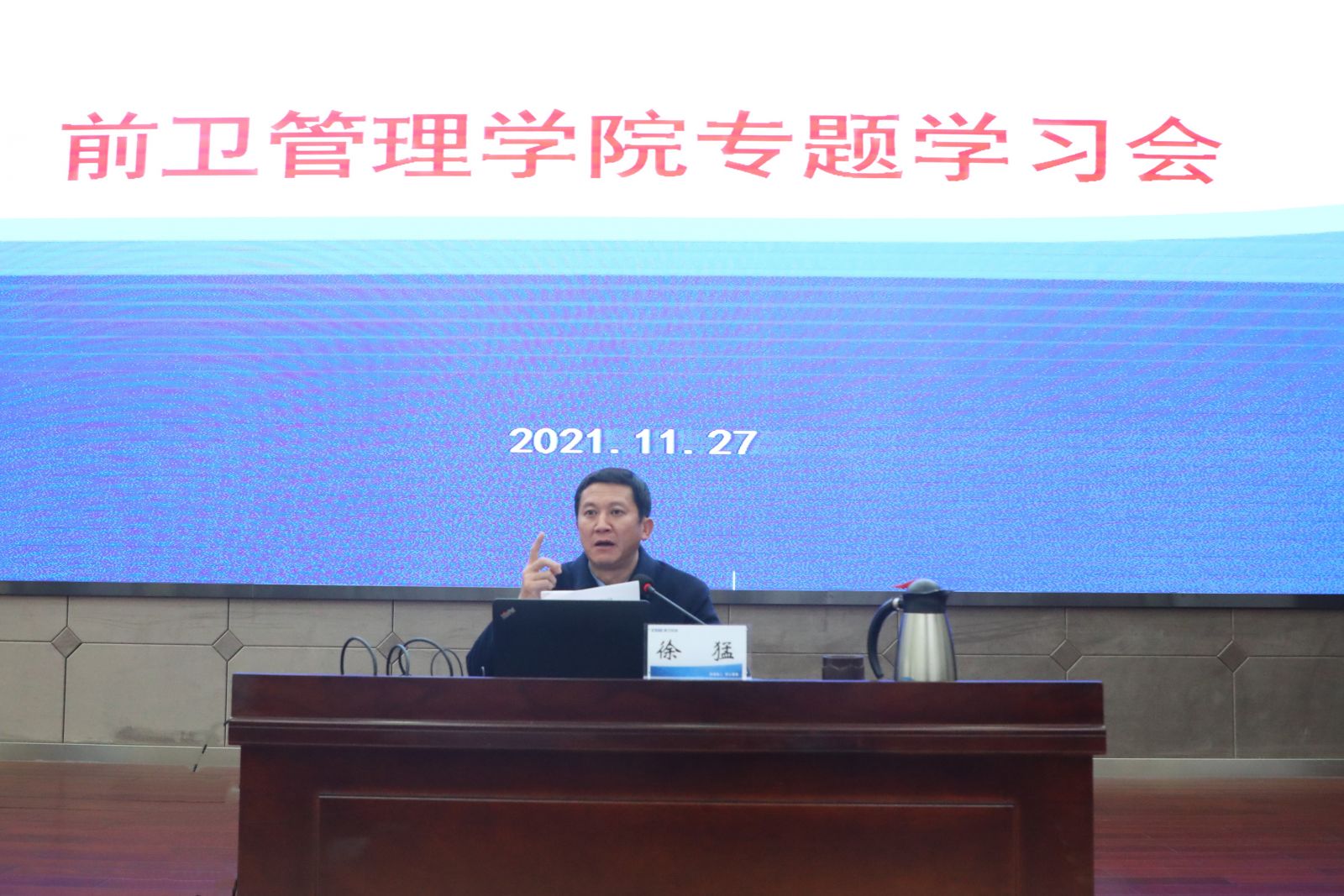 11月27日上午,黨委書記、董事長徐猛利用周六休息時間,在“前衛(wèi)管理學(xué)院”專題學(xué)習(xí)會上為公司兩級領(lǐng)導(dǎo)干部、科技委委員、技術(shù)專家講課,并與大家共同分享了他不久前在參加第十期中央企業(yè)中青年高級管理人員培訓(xùn)班的學(xué)習(xí)體會和學(xué)習(xí)收獲。