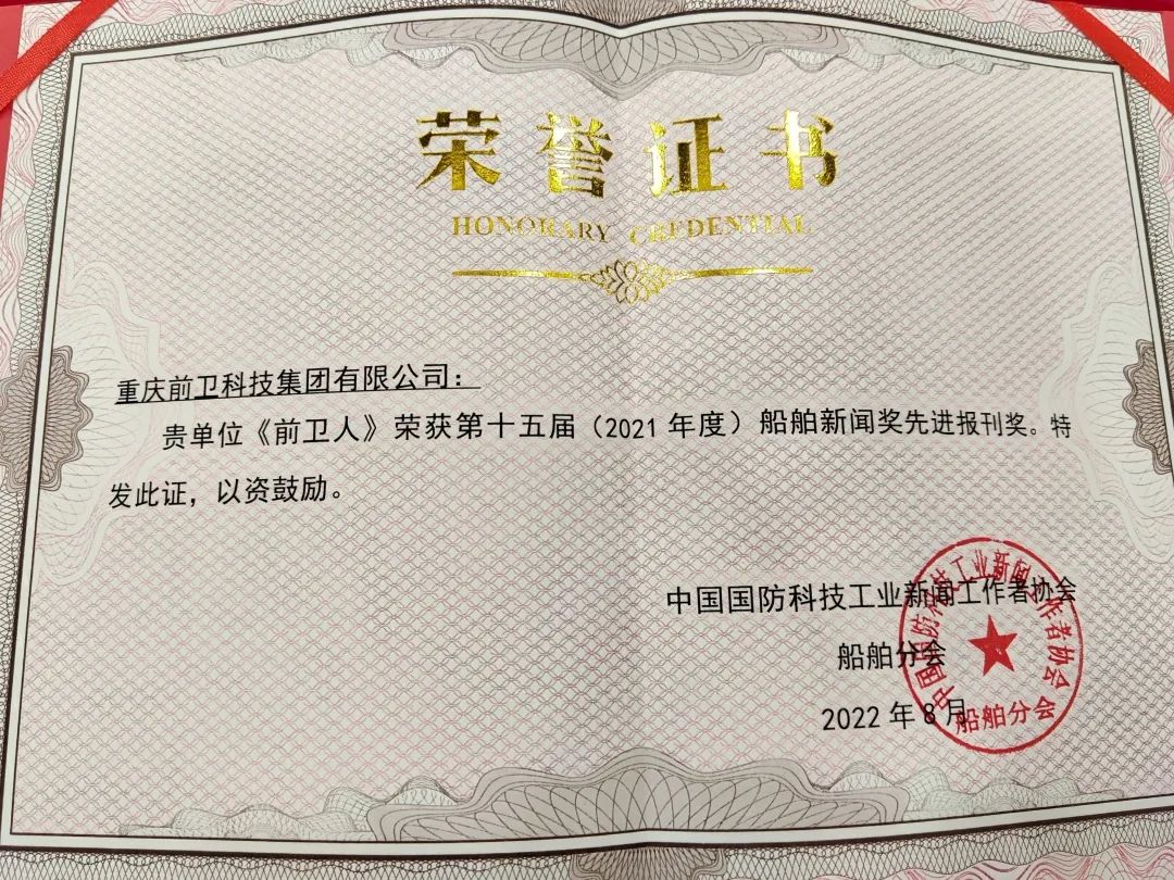 8月15日上午,在昆明召開的2022年全國船舶新聞業(yè)務(wù)培訓(xùn)班開班儀式上,公司報(bào)刊《前衛(wèi)人》榮獲第十五屆(2021年度)船舶新聞獎(jiǎng)先進(jìn)報(bào)刊獎(jiǎng)!